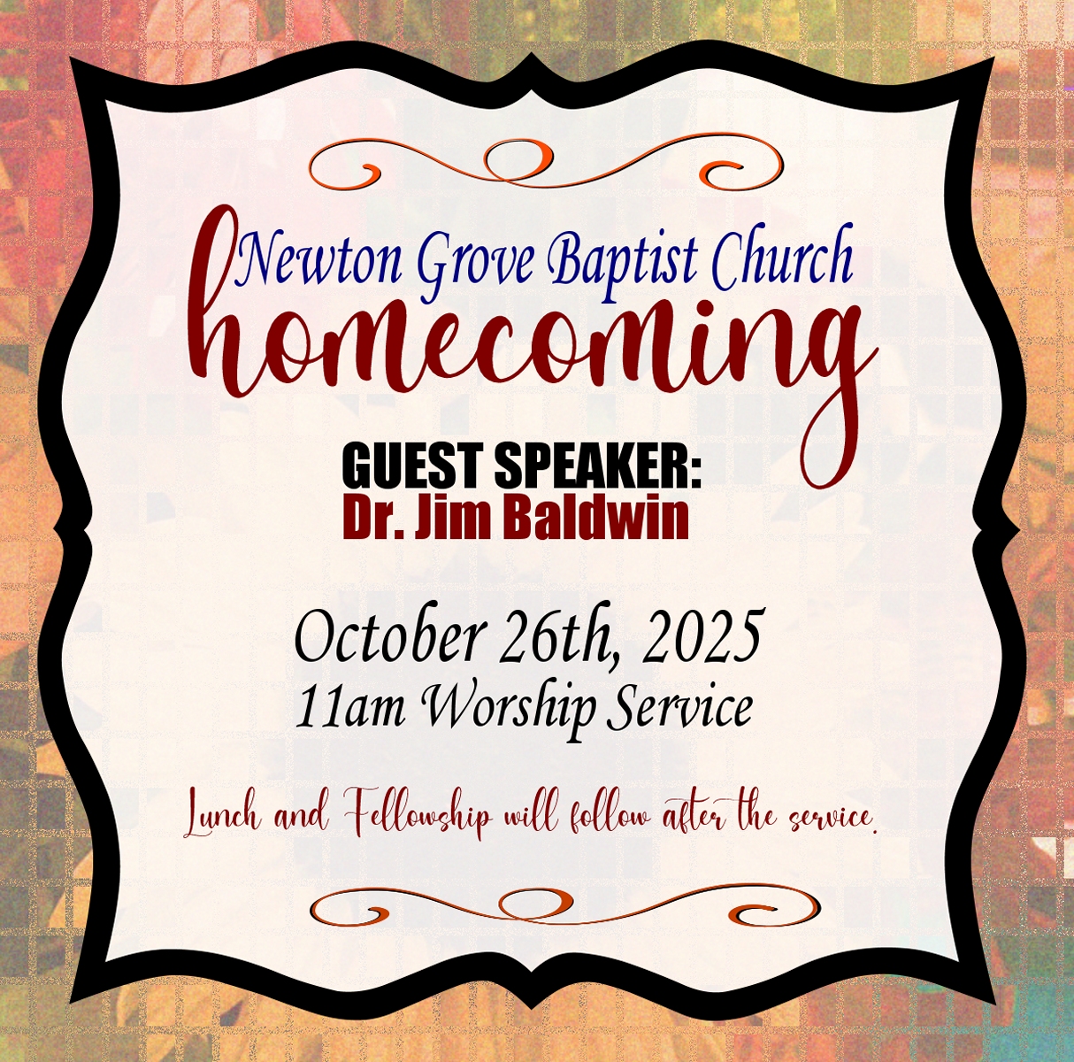 We are inviting you to our HOMECOMING this October 26th. Our Guest Speaker will be Dr. Jim Baldwin.